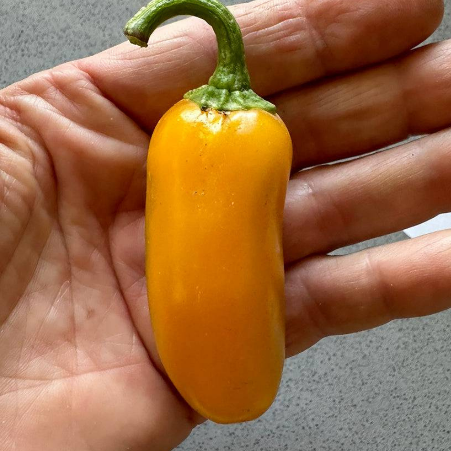 Sarı Jalapeno klasik yeşil jalapeñonun güneş gibi parlayan sarı versiyonudur ve hem görünümüyle hem de aromasıyla bahçeye enerji katar. Olgunlaştıkça sararan meyveleri, orta seviyede acılığı ve meyvemsi aromasıyla özellikle taze tüketimde, turşularda ve soslarda tercih edilir. Acılık seviyesi genellikle 2.500–8.000 Scoville aralığında olduğundan hem acı severlere hem de daha dengeli lezzet isteyenlere hitap eden çok yönlü bir türdür.